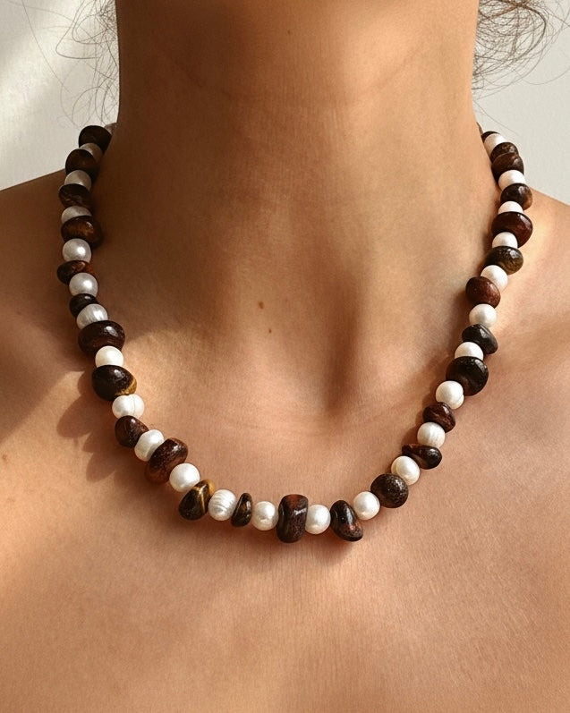 A nod to effortless French elegance and soulful strength. The Brigitte Necklace pairs vintage faux pearls with natural kyanite and...