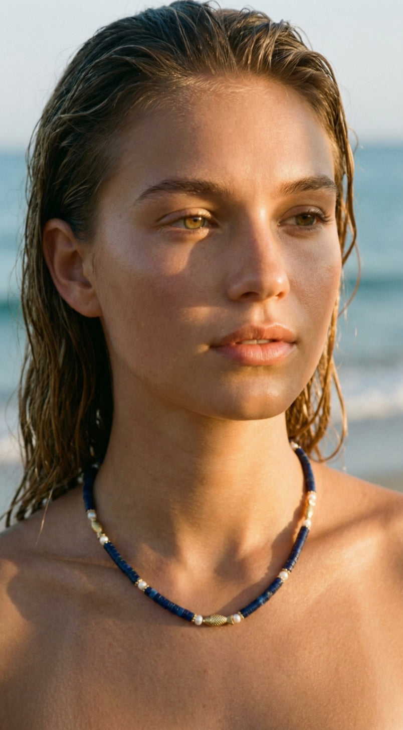 Regular price Dhs. 295.00Sale price Dhs. 295.00 Regular price Dhs. 320.00Unit price / perA necklace shaped in deep blue lapis and soft pearl glow, designed to bring clarity, calm and a quiet touch of confidence. The small gold fish...