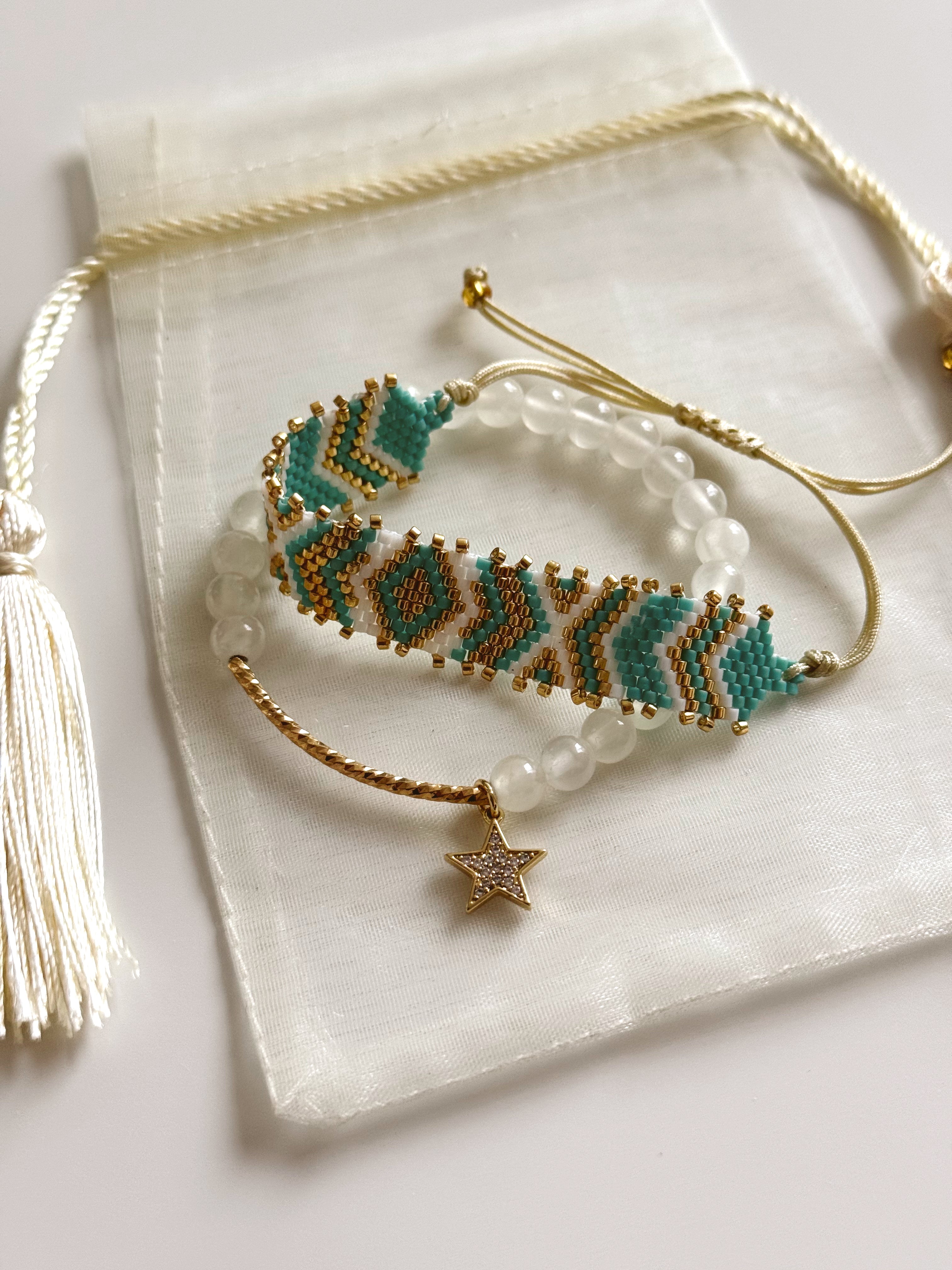 Regular price Dhs. 220.00Sale price Dhs. 220.00 Regular price Dhs. 280.00Unit price / perA set designed for effortless layering and quiet presence. The selenite bracelet, finished with a star charm, carries soft luminous energy and a touch of light....