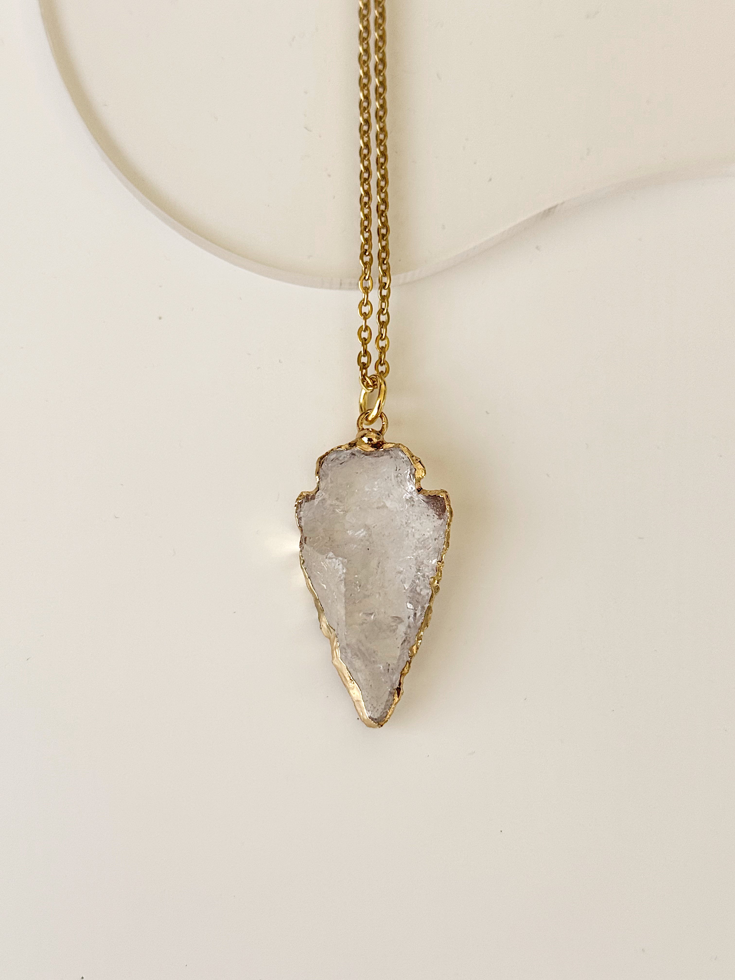 Regular price Dhs. 189.00Sale price Dhs. 189.00 Regular price Dhs. 230.00Unit price / perA raw crystal pendant with golden edges, minimalist, luminous, and powerful in its simplicity. Shaped like an arrow, it symbolizes focus and direction, guiding your energy...