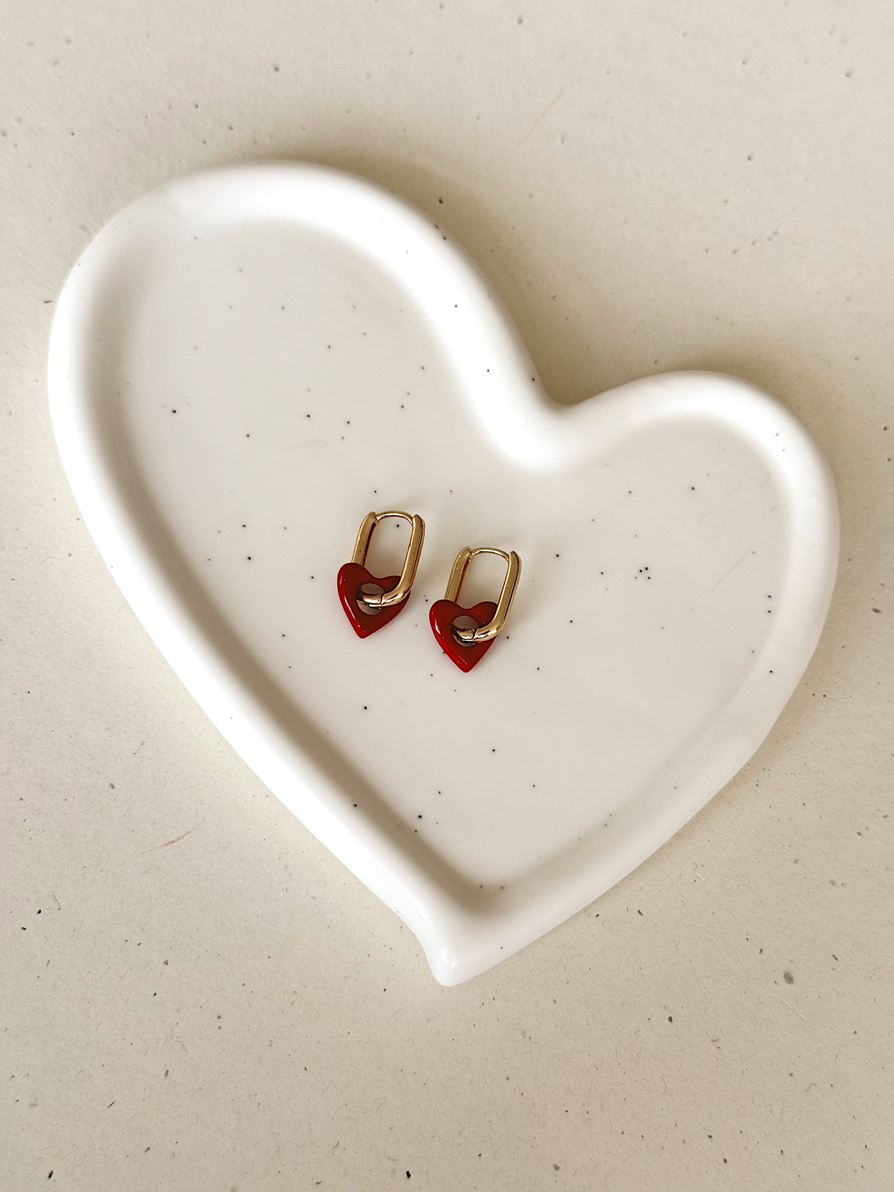 Regular price Dhs. 55.00Sale price Dhs. 55.00 Regular price Dhs. 85.77Unit price / perAdd a touch of charm to your everyday look. Bold yet playful, these earrings feature sleek stainless steel hoops with glossy red enamel hearts. Material:...
