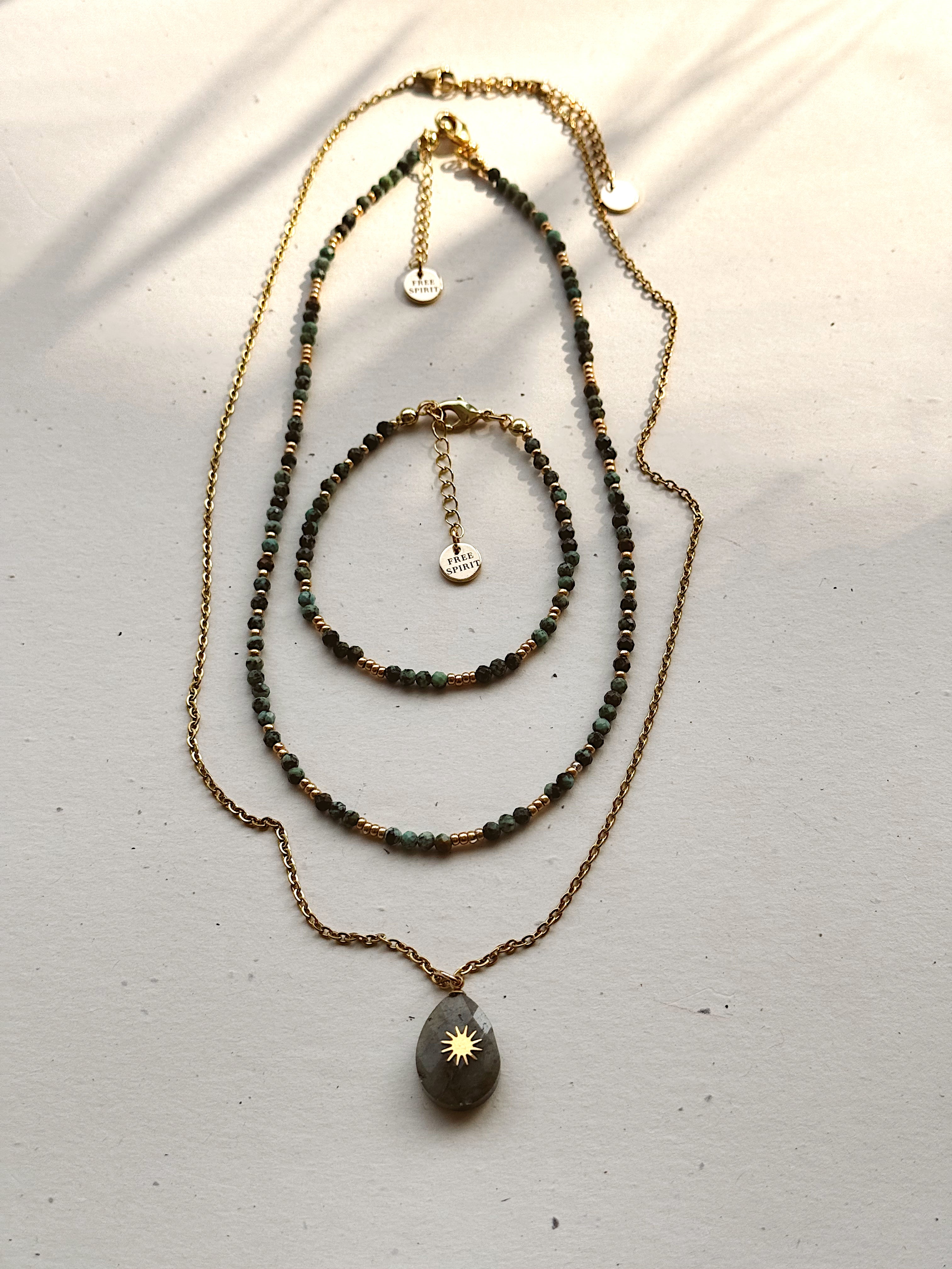 Regular price Dhs. 420.00Sale price Dhs. 420.00 Regular priceUnit price / perRooted in the spirit of wanderers, this set carries the raw poetry of bohemian style. Layered strands echo tribal rhythm, grounding the look in effortless freedom...