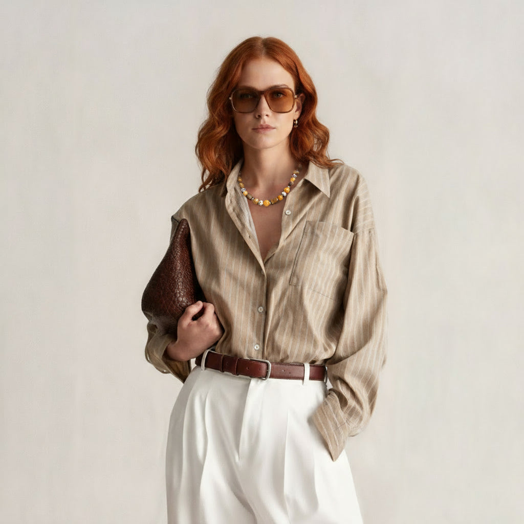 Natural stones, warm tones, glossy depth and a hint of attitude, a look that feels like autumn in motion. Think golden honey with a dash of spice, grounded but playful, strong but never loud.