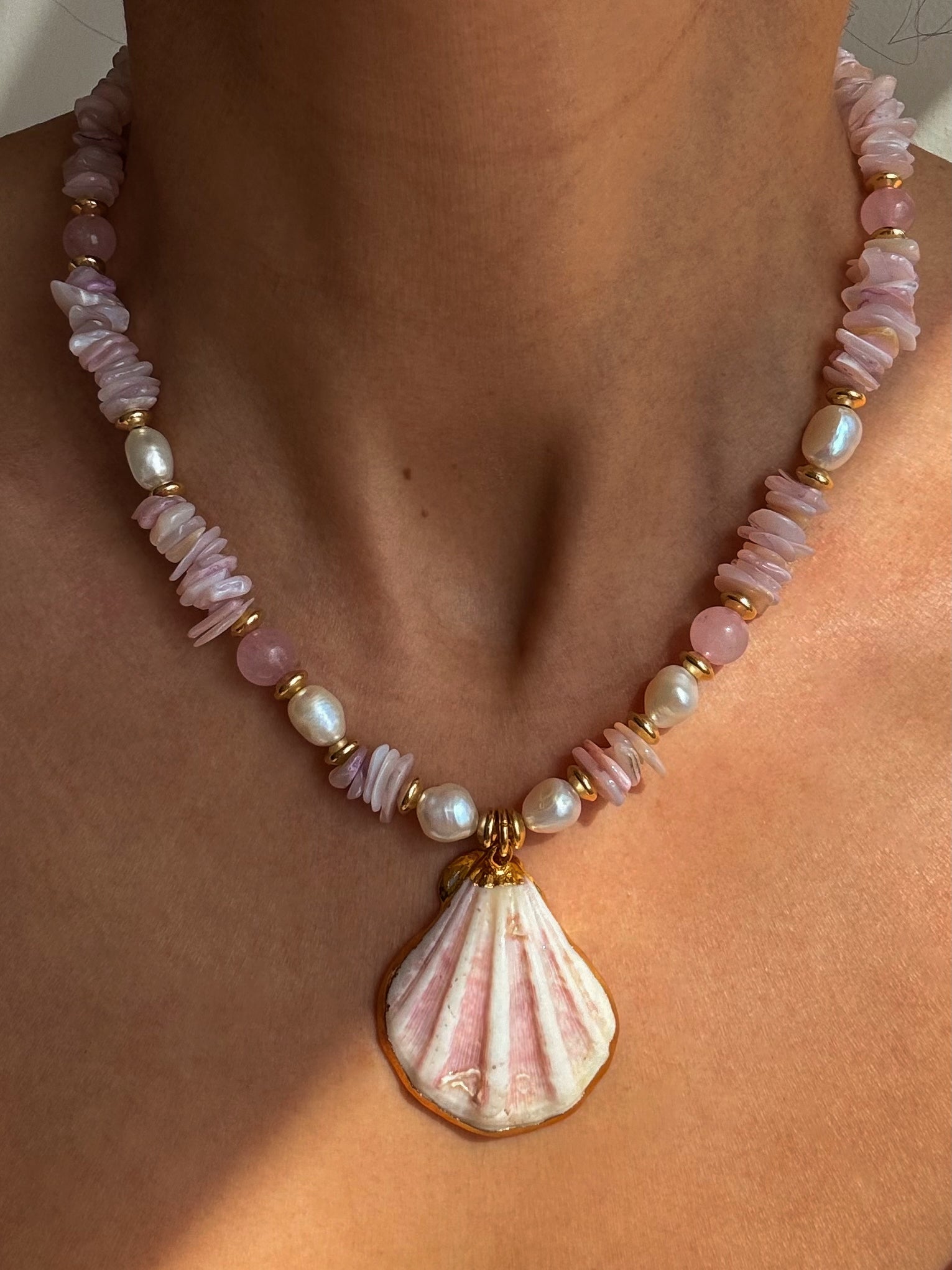 Pink glow, soft gold and a seashell that looks like it remembers secrets. Not loud, not shy, just effortlessly pretty with a touch of magic.